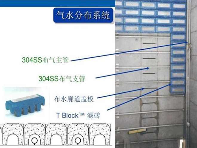 現(xiàn)行的常規(guī)工藝:T型濾磚氣水分布系統(tǒng)