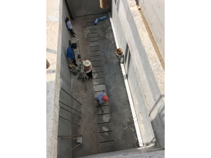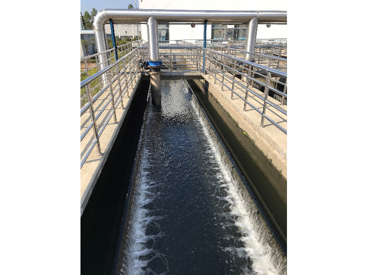 反硝化深床濾池池體,采用狹長廊道使進水均勻;濾磚結(jié)構(gòu)使濾池反沖洗效果良好;反硝化過程中產(chǎn)生的氮氣會使過濾產(chǎn)生氣阻,通過驅(qū)逐氮氣,確保濾池運行效果。